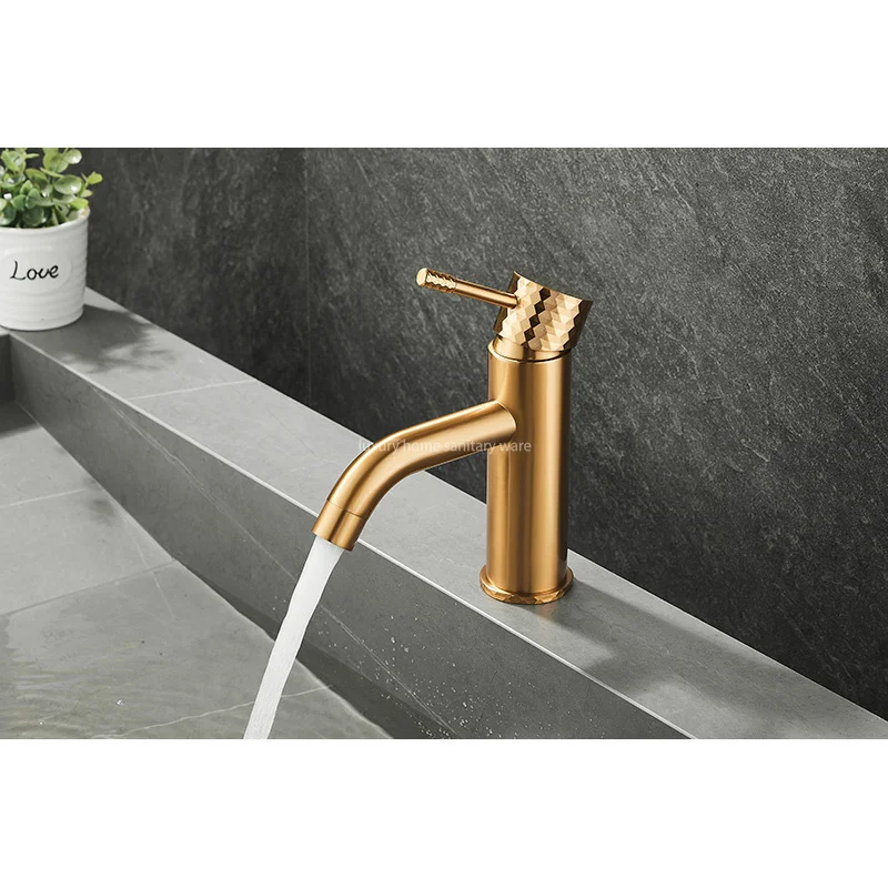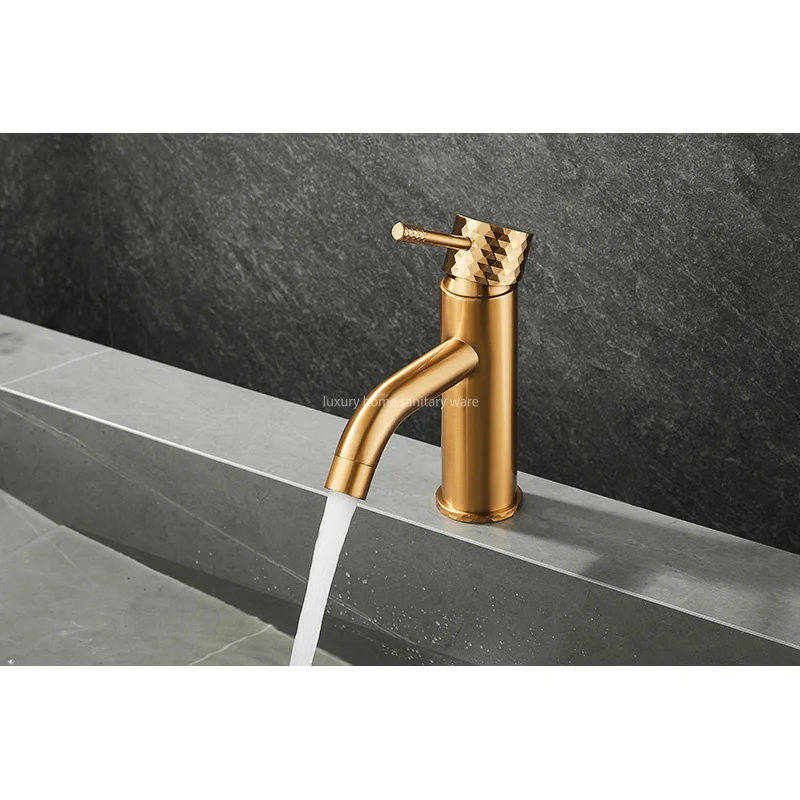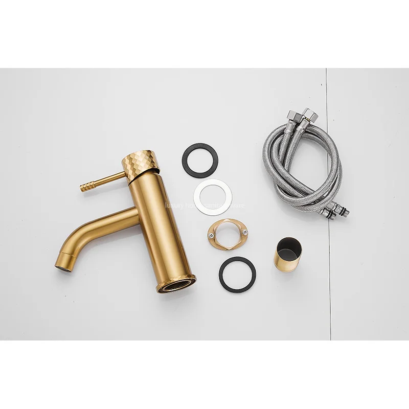 Introducing, the 2025 Hot-selling Basin Faucet from Luxury Home, a stunning addition to your bathroom that combines sleek design with top-notch functionality. This single-handle washbasin faucet is a true standout piece with its low curved mouth and beautifully carved handle in a luxurious brushed gold finish.
