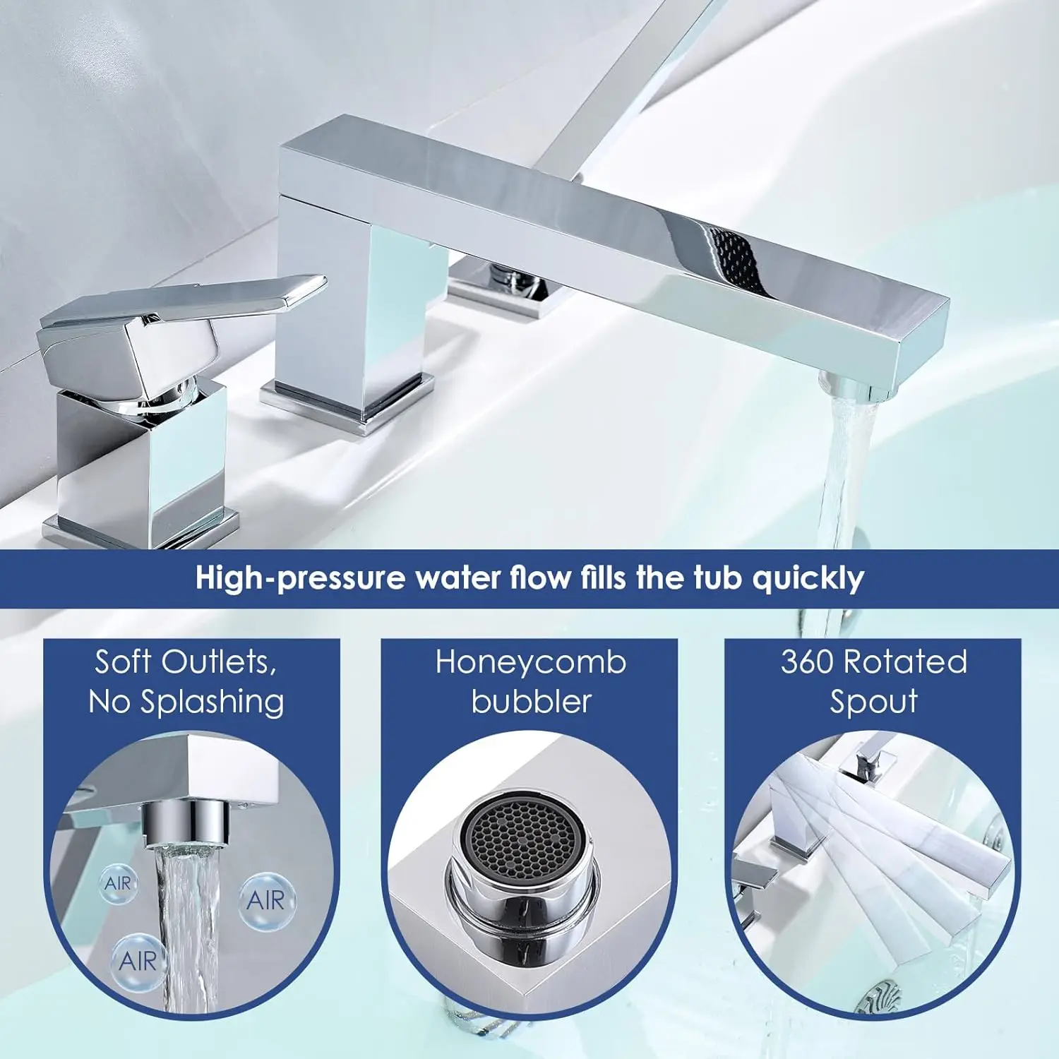 Introducing the Luxury Home Chrome Widespread Bathtub Faucet, perfect for adding a touch of elegance and luxury to your bathroom space. This Roman tub filler mixer features a sleek and modern design with a rotated spout, allowing for easy maneuverability and control of water flow