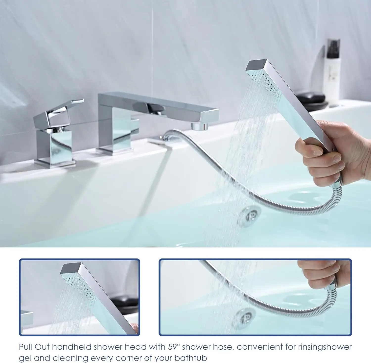 The highlight of this bathtub faucet is the pull out handheld shower head, providing added functionality and versatility. Use the handheld shower head to easily rinse off after a relaxing bath or to clean the tub effortlessly. The waterfall tap design creates a beautiful and soothing water flow, adding a spa-like feel to your bathing experience