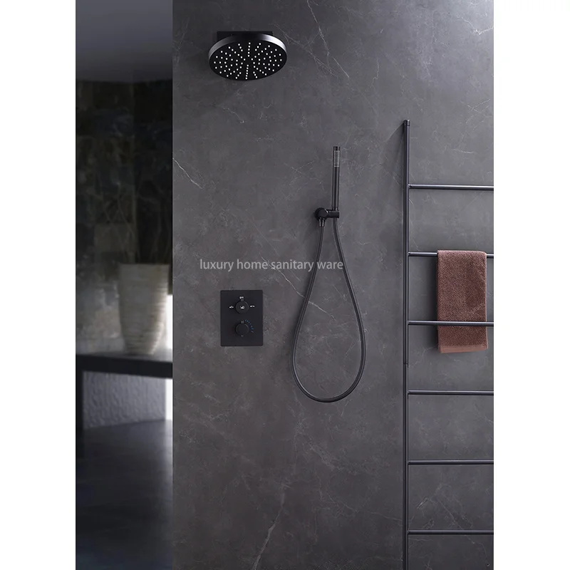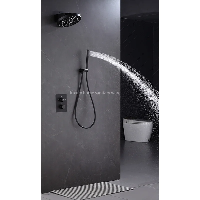 The built-in design of this shower set not only creates a clean and seamless look in your bathroom, but also saves space and makes cleaning a breeze. The black finish adds a touch of sophistication and style, perfect for any contemporary bathroom design.