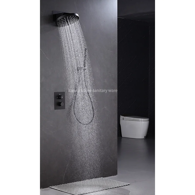 Constructed from high-quality materials, this shower set is durable and long-lasting, ensuring years of use. The top spray provides a strong and invigorating shower experience, while the concealed design keeps the plumbing fixtures hidden for a streamlined appearance.
