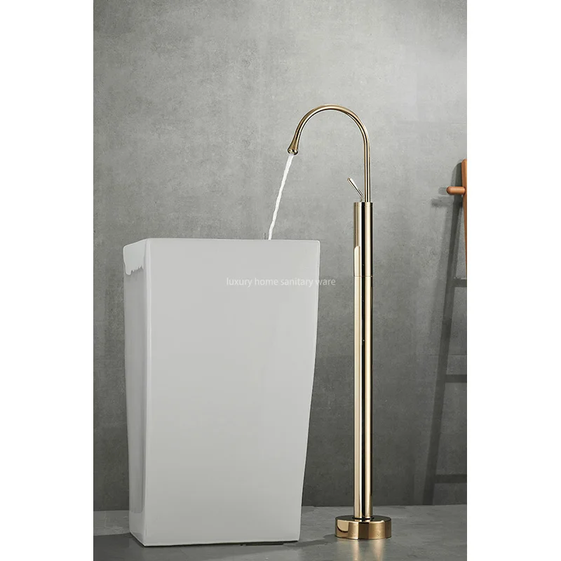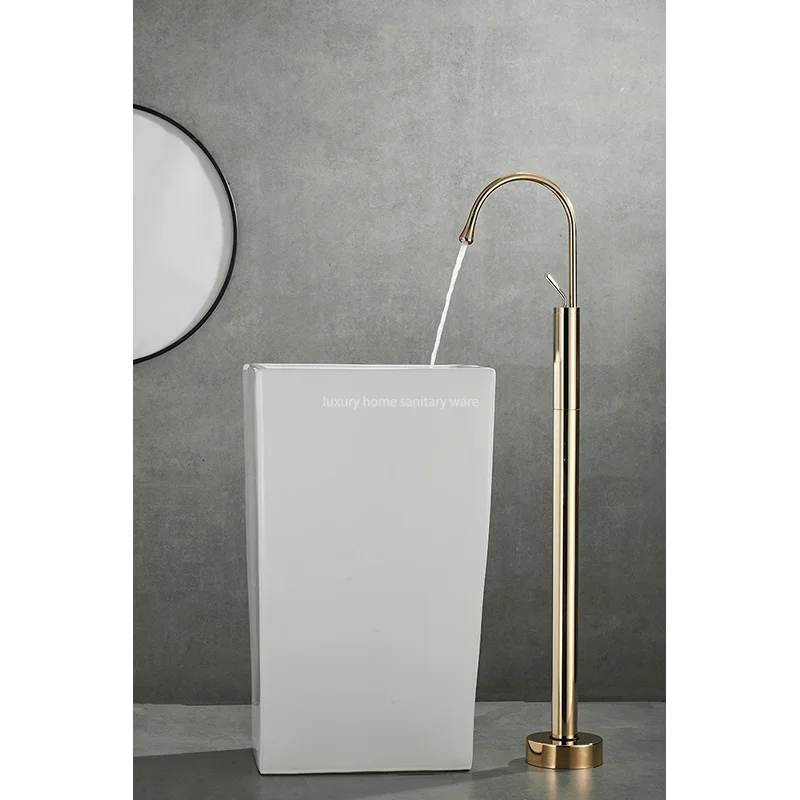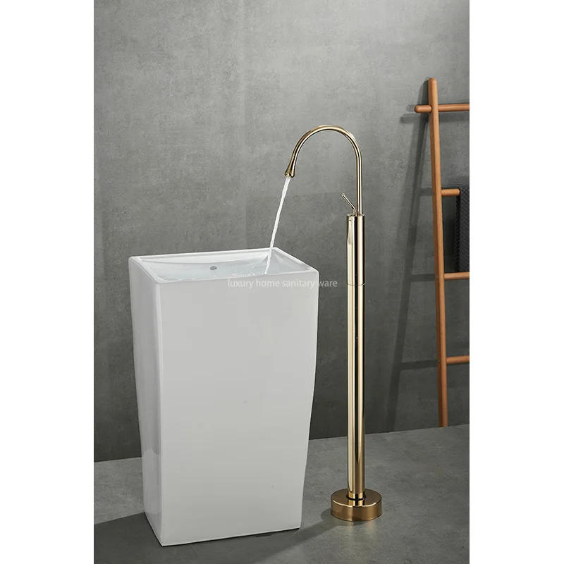 Introducing, the Deluxe Bathroom Floor-to-floor Dripping Zirconium Gold Faucet from Luxury Home. This exquisite faucet is the perfect addition to any bathroom, bringing a touch of luxury and sophistication to your space.