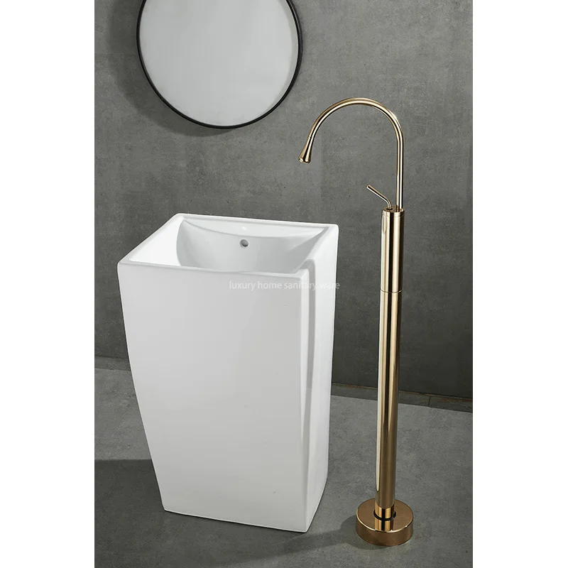 Transform your bathroom into a luxurious oasis with the Deluxe Bathroom Floor-to-floor Dripping Zirconium Gold Faucet from Luxury Home. This exquisite faucet is the perfect blend of style, quality, and functionality, making it a must-have addition to any modern bathroom. Upgrade your space with this stunning faucet and enjoy the ultimate in luxury and sophistication