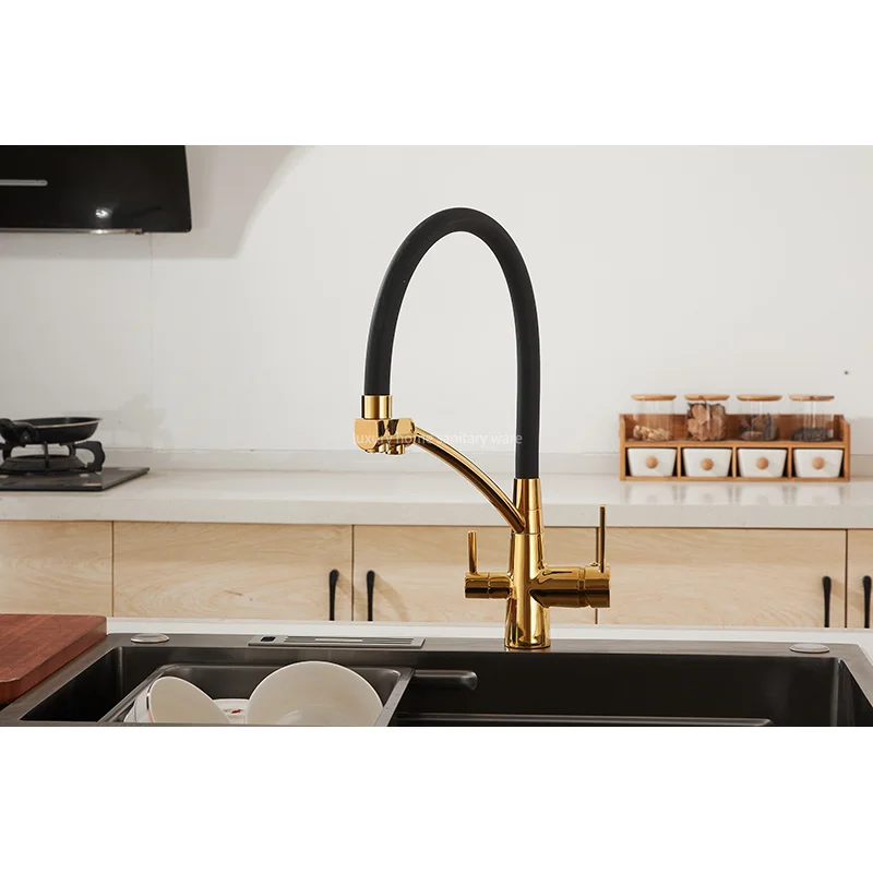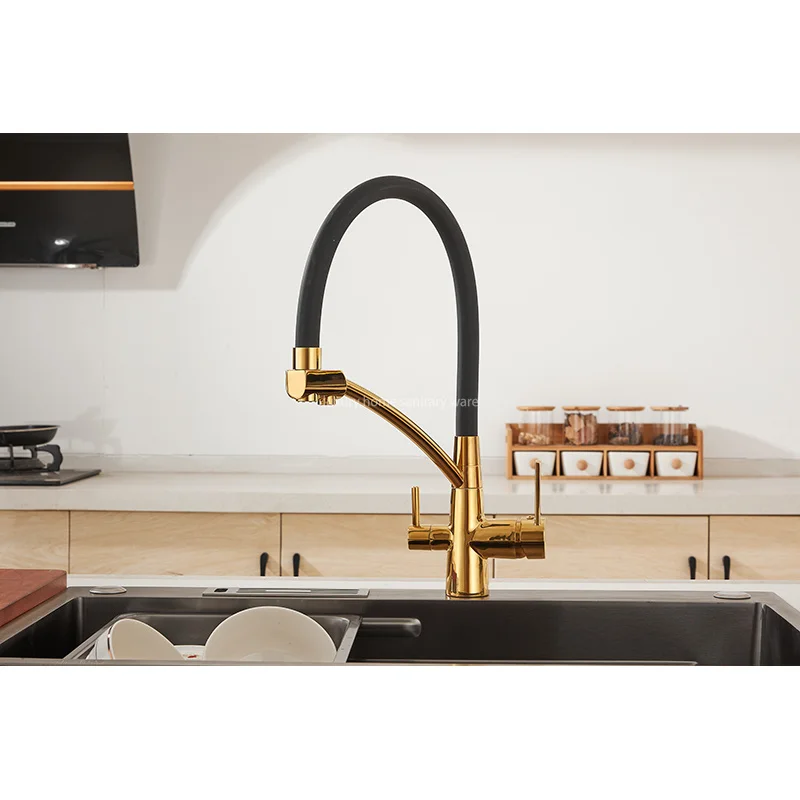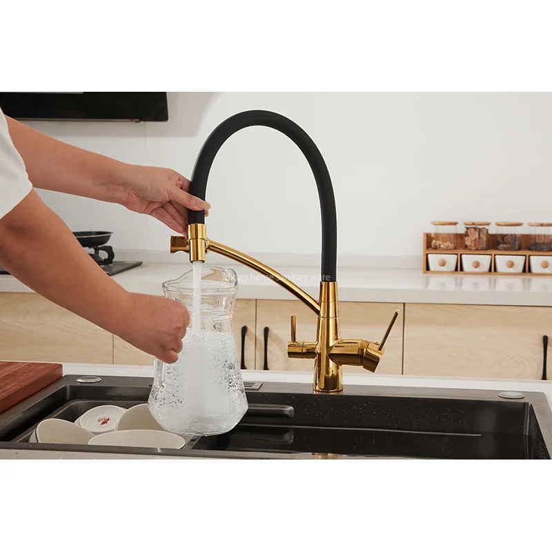 Upgrade your kitchen with the Factory Direct Pointed Four-way Hose Water Purifier-black Kitchen Faucet Universal Rotating Deck Installation by Luxury Home. Experience the luxury of clean water and the convenience of a versatile and functional kitchen faucet. Make a smart investment in your health and your home with this innovative and stylish kitchen accessory
