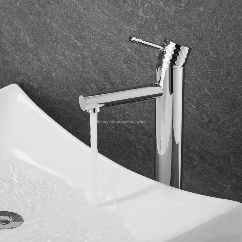 The Luxury Home High Bathroom Sink Faucet is the perfect addition to any modern bathroom. This elegant faucet features a sleek design with a single hole and single handle for easy operation. The carved handle adds a touch of sophistication to the overall look of the faucet, making it a stylish choice for any washbasin.
