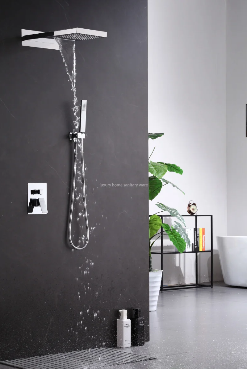 Upgrade your bathroom with the Luxury Home High-quality Concealed Electroplating Shower Faucet Set. This sleek and modern shower system is perfect for villa or hotel bathrooms looking to add a touch of luxury
