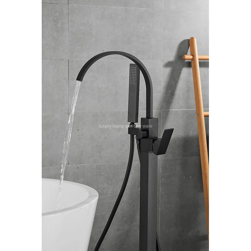 Transform your bathing experience with the Luxury Home High-Quality Independent 360 Rotating Bathtub Floor Faucet. Add a touch of elegance and style to your bathroom with this sleek black faucet. Upgrade your home with luxury and convenience today