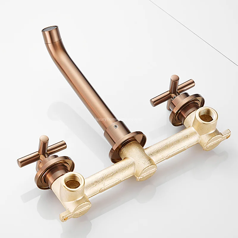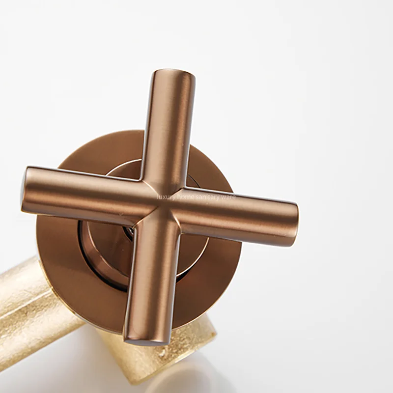 Upgrade your bathroom with the Luxury Home Concealed Cross Hand wheel Drawing pink Wall-mounted Basin Sink Mixer Faucet today and add a touch of luxury to your space. Experience the perfect blend of style and functionality with this hot-selling faucet