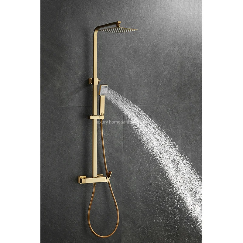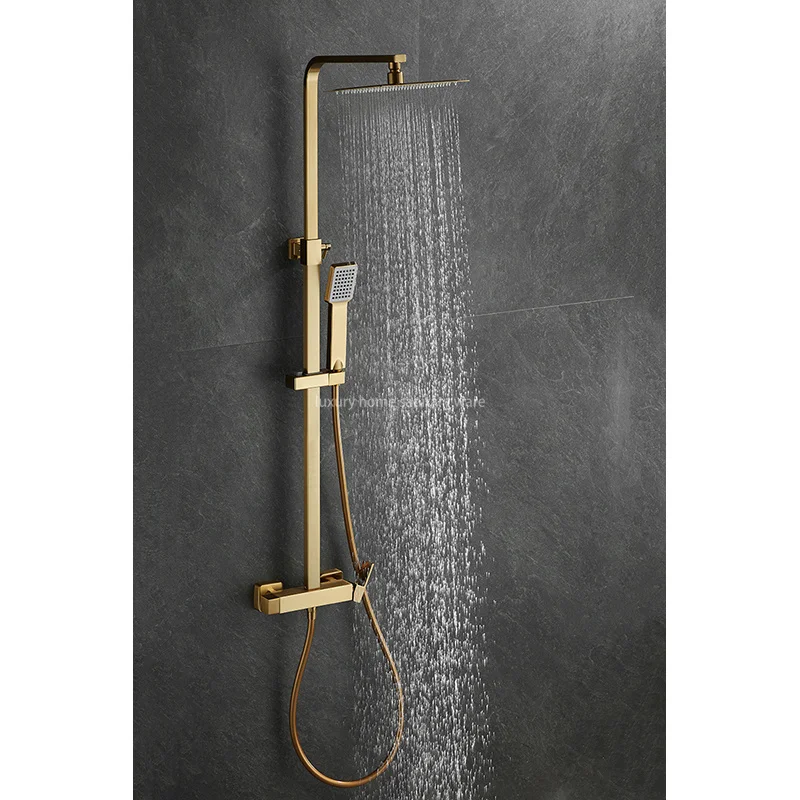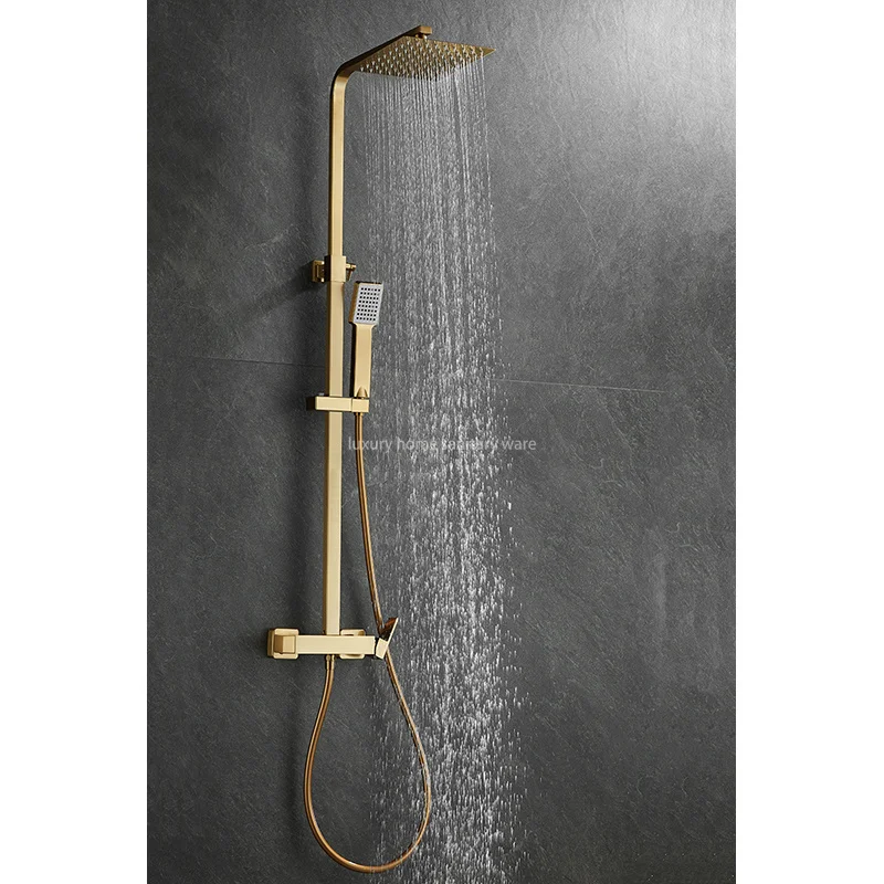 Introducing, the Luxury Home Luxurious Brushed Gold Hot and Cold Shower Set - the ultimate way to elevate your shower experience to pure luxury and style. This exquisite wall-mounted full shower set is crafted from high-quality brass with a stunning brushed gold finish that will instantly add a touch of elegance to your bathroom.
