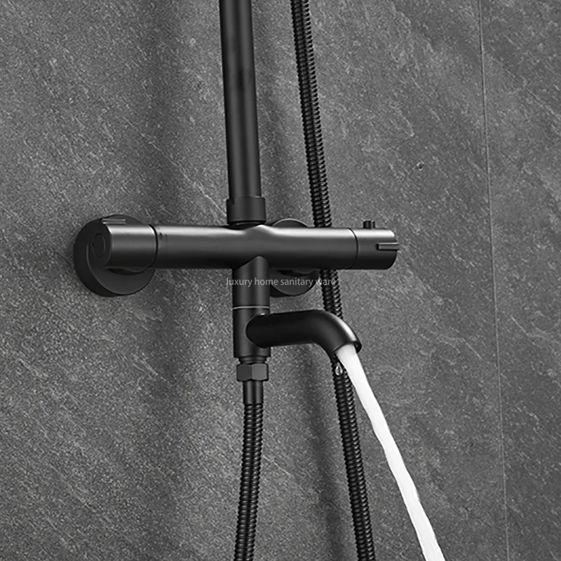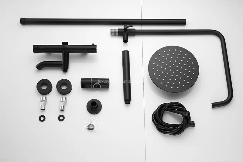This shower set is not just functional, but also aesthetically pleasing. The black finish adds a touch of modern elegance to your bathroom, while the round bar design gives it a sleek and stylish look. Whether you have a contemporary or industrial bathroom style, this shower faucet set will complement any design.