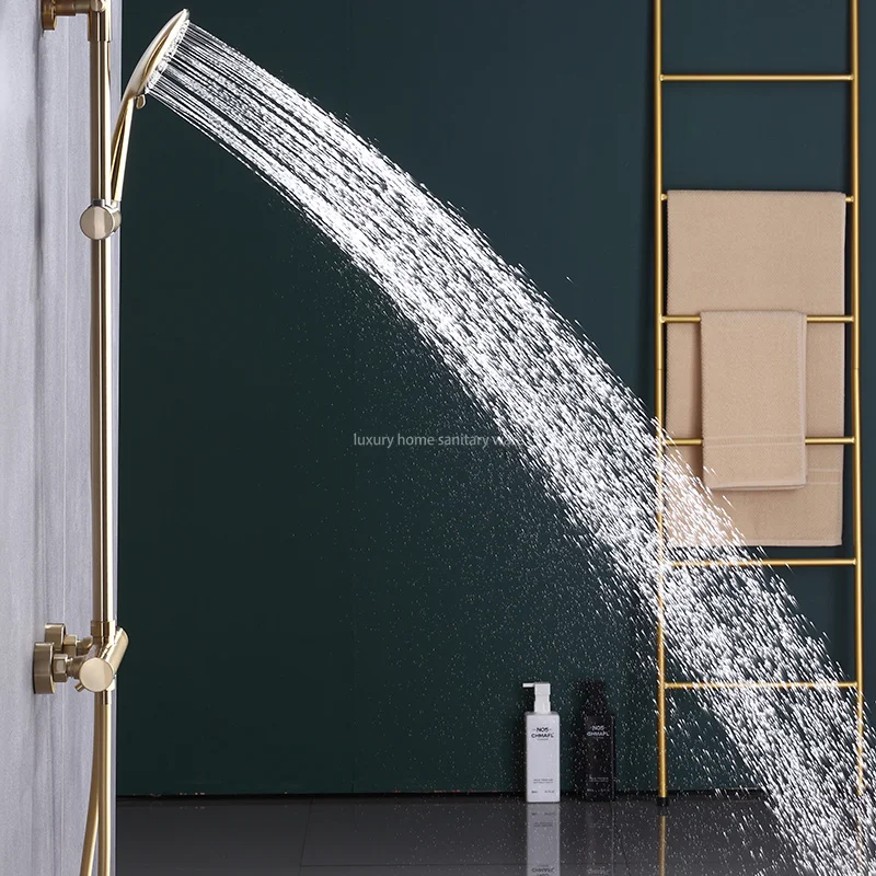 Whether you're looking to update your current bathroom or create a spa-like retreat, the Luxury Home Modern Home Fashion Wind Round Stick Constant Temperature Small Round Stick Hand-painted Brushed Gold Full Shower Set is the perfect choice. Transform your daily shower routine into a luxurious and indulgent experience with this sleek and stylish shower set. Upgrade your home with Luxury Home today