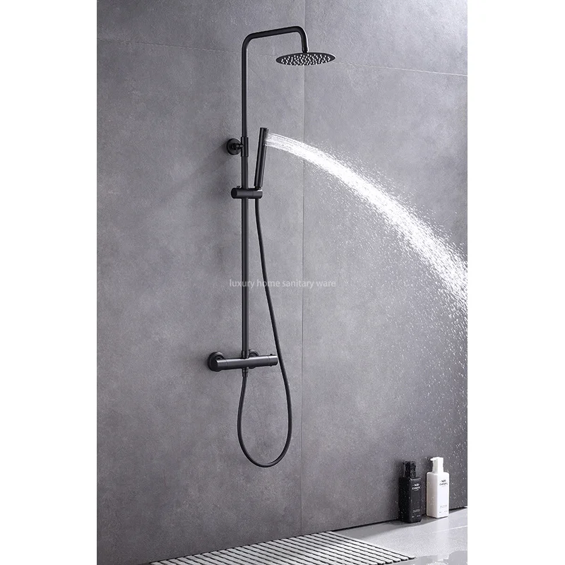 Made from high-quality materials, this shower faucet is built to last. The black finish adds a touch of sophistication and style to your bathroom decor. The small round stick hand spray is perfect for targeted cleaning, while the constant temperature feature ensures a comfortable and consistent shower experience every time.