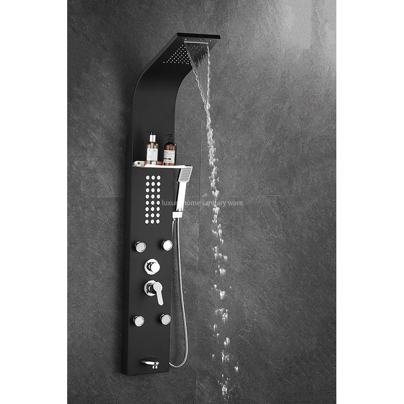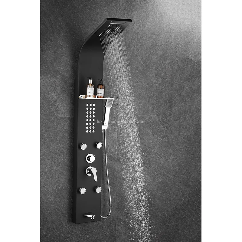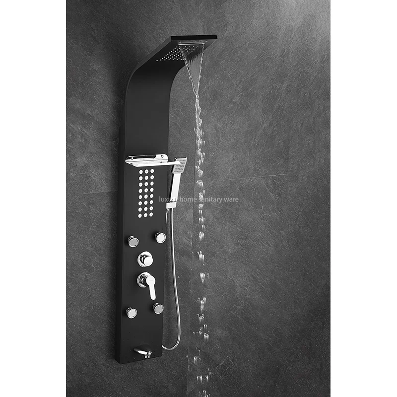 Upgrade your shower experience with the Luxury Home Multi-functional Matte Black Rain Shower Head Panel Tower System Set. Transform your bathroom into a spa-like oasis with this sleek and stylish shower panel that offers both comfort and luxury. Trust in the quality and durability of Luxury Home products to provide you with a shower experience like no other